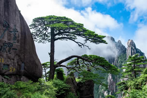 黃山原名“黟山”,因峰巖青黑,遙望蒼黛而名。后因傳說軒轅黃帝曾在此煉丹,故改名為“黃山”。黃山代表景觀有“五絕三瀑”,五絕:奇松、怪石、云海、溫泉、冬雪;三瀑:人字瀑、百丈泉、九龍瀑。黃山迎客松是安徽人民熱情友好的象征,承載著擁抱世界的東方禮儀文化。