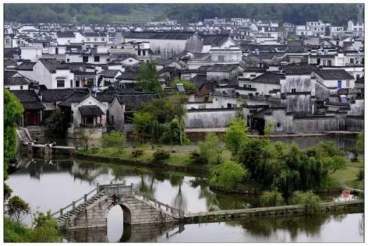 宏村位于黃山的西南麓、黟縣縣城西南11公里處,原是古代黟縣赴京通商的必經(jīng)之處。整個(gè)村落占地約28公頃,其中被界定為古村落范圍的面積有19.11公頃。宏村是徽州傳統(tǒng)地域文化、建筑技術(shù)、景觀設(shè)計(jì)的杰出代表,具有極高的歷史、藝術(shù)、科學(xué)價(jià)值,是徽州傳統(tǒng)建筑文化的真實(shí)見證。宏村已被聯(lián)合國(guó)教科文組織列入了《世界文化遺產(chǎn)名錄》。