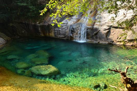 彩池隨周圍景色變幻、太陽角度及光線明暗的不同,或晶明或翠綠,變化萬千,絢麗多彩,宛如一顆顆翡翠灑滿谷中,故名翡翠谷。 在獲奧斯卡四項(xiàng)大獎(jiǎng)的影片《臥虎藏龍》中,竹稍打斗、池邊愛戀、飛瀑踏波等鏡頭都拍攝于翡翠谷。