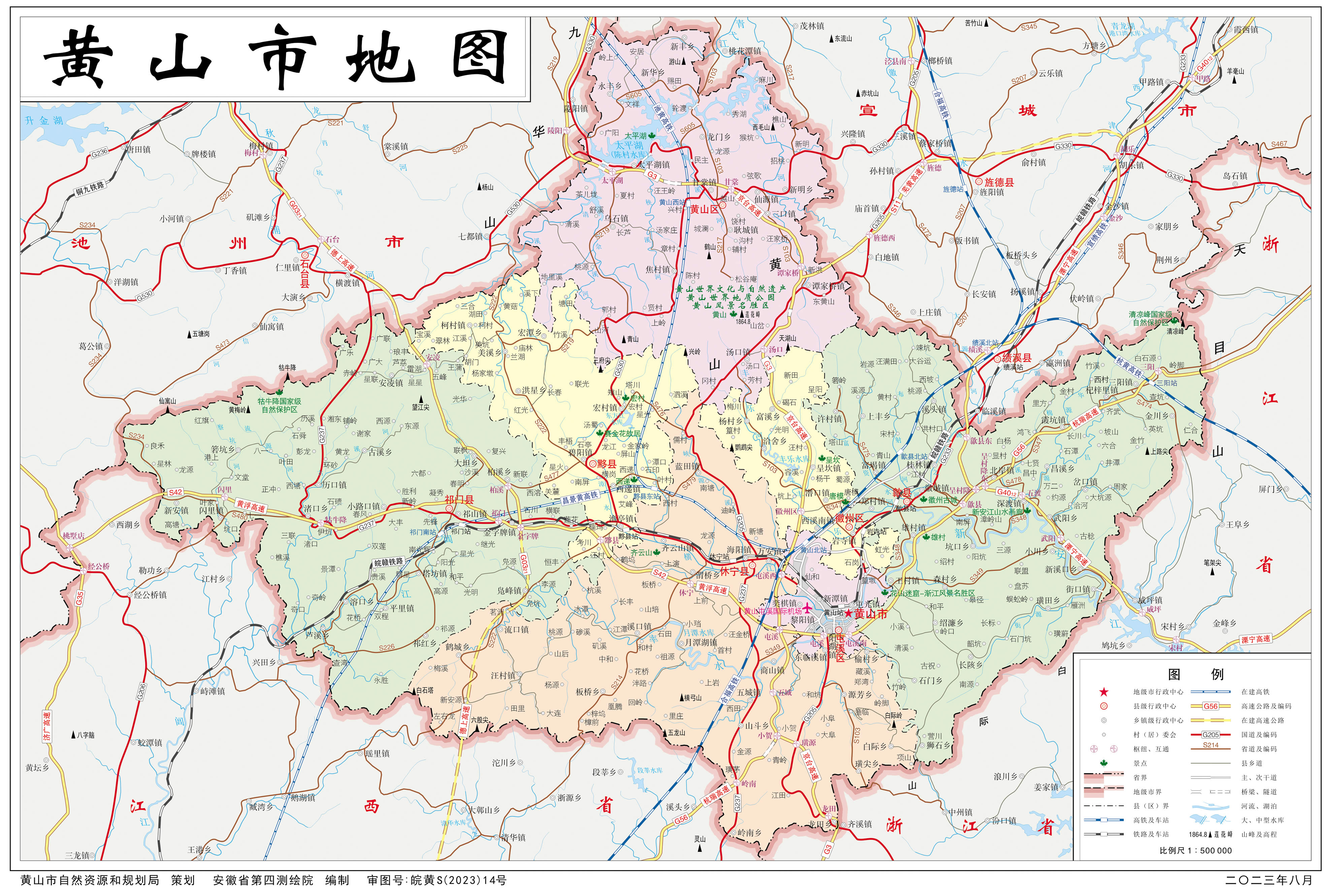 黃山市轄3個(gè)市轄區(qū)、4個(gè)縣: