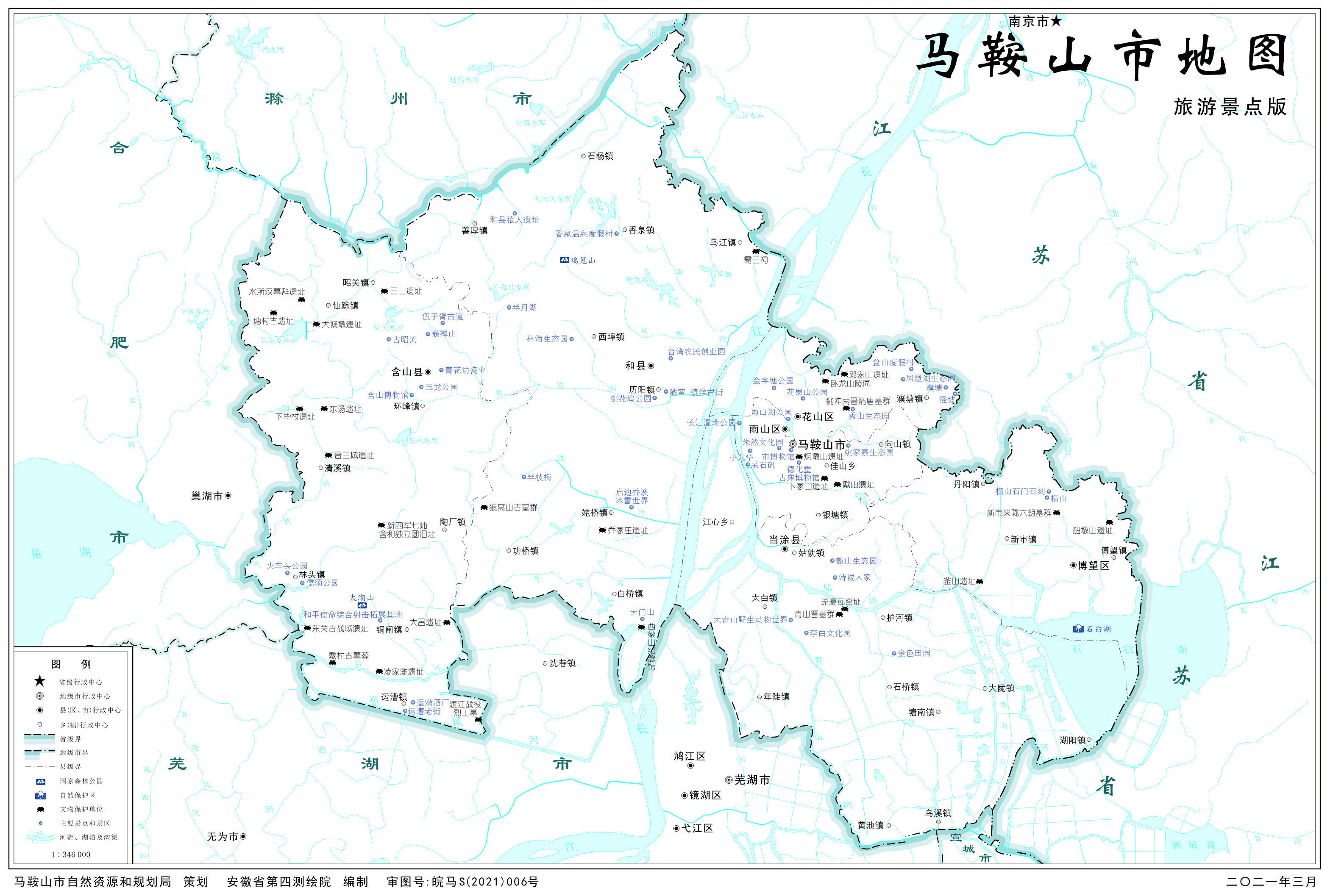 馬鞍山市轄3個市轄區(qū)、3個縣: