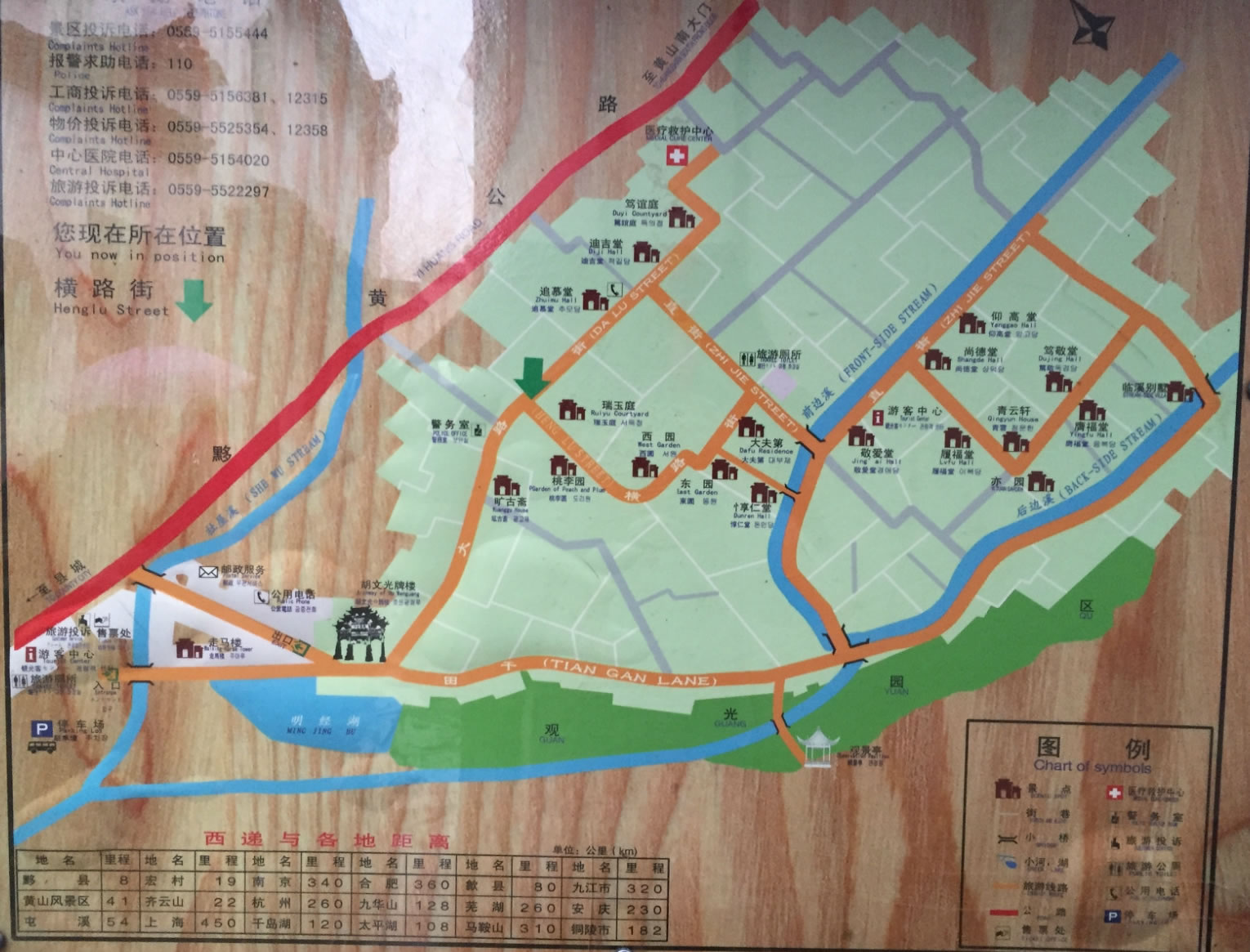 西遞、宏村古民居位于中國東部安徽省黟縣境內(nèi)的黃山風(fēng)景區(qū)。宏村始建于南宋紹興年間(公元1190—1194年),原為汪姓聚居之地,綿延至今已有800余年。它背倚黃山余脈羊棧嶺、雷崗山等,地勢較高,經(jīng)常云蒸霞蔚,有時如濃墨重彩,有時似潑墨寫意,真好似一幅徐徐展開的山水長卷,因此被譽(yù)為“中國畫里的鄉(xiāng)村”。著名景點(diǎn)有南湖風(fēng)光、南湖書院、月沼春曉、牛腸水圳、雙溪映碧、亭前大樹、雷崗夕照、樹人堂、明代祠堂樂敘堂等。南宋紹興年間,古宏村人為防火灌田,獨(dú)運(yùn)匠心開仿生學(xué)之先河,建造出堪稱“中國一絕”的人工水系,是當(dāng)今“建筑史上一大奇觀”:巍峨蒼翠的雷崗為牛首,參天古木是牛角,由東而西錯落有致的民居群宛如龐大的牛軀。引清泉為“牛腸”,經(jīng)村流入被稱為“牛胃”的月塘后,經(jīng)過濾流向村外被稱作是"牛肚"的南湖。人們還在繞村的河溪上先后架起了四座橋梁,作為牛腿。這種別出心裁的科學(xué)的村落水系設(shè)計(jì),不僅為村民解決了消防用水,而且調(diào)節(jié)了氣溫,為居民生產(chǎn)、生活用水提供了方便,創(chuàng)造了一種"浣汲未防溪路遠(yuǎn),家家門前有清泉"的良好環(huán)境。