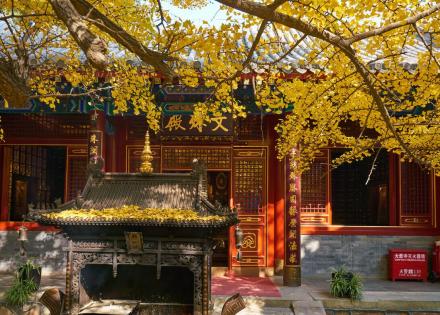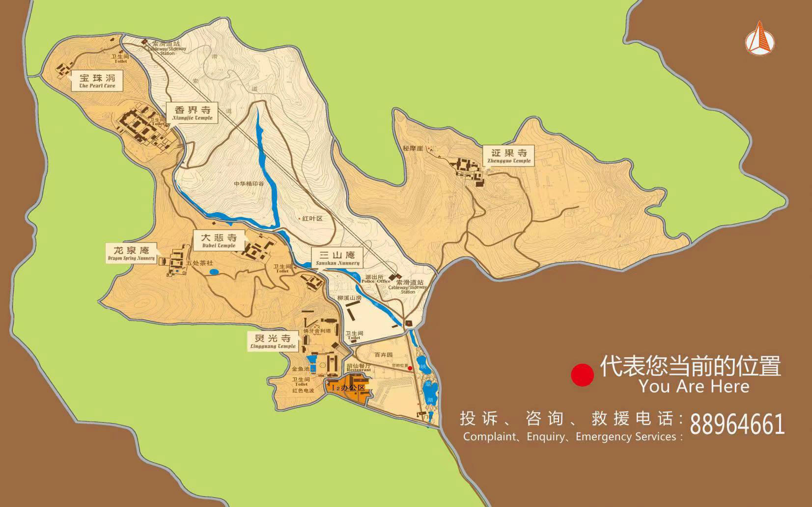 此為八大處一大勝景。霜秋一到,三山之上的黃櫨樹、火炬樹、元寶楓以及柿子樹、核桃樹和山花椒等等,黃時薄山碎,金迎風(fēng)閃爍,紅時又如二月鮮花處處流丹。有橡樹、青松翠柏,赤橙。