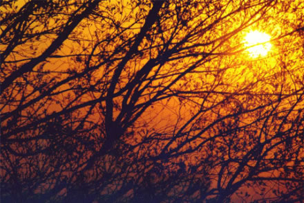 三山之中,盧師山位居?xùn)|北。平坡、翠微二山較高,因而日落較早,而盧師卻日落獨遲。所以流霞落日之美則不得不讓于盧師所專享。且當(dāng)山影遮斷西面山坡時,東山盧師就愈發(fā)顯得光明非常。峰影參差,嵐光濃淡。