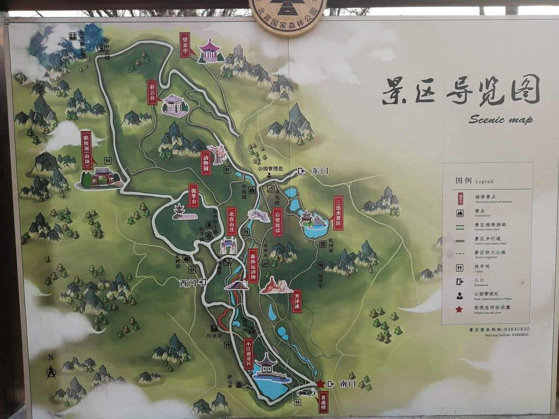 北京北宮國(guó)家森林公園,位于北京市豐臺(tái)區(qū)西北部山區(qū),距北京市中心20公里,是丘陵型自然風(fēng)景區(qū)。北宮因帝王憩地而得名。公園始建于2002年10月,2005年12月被國(guó)家林業(yè)局正式批準(zhǔn)為國(guó)家級(jí)森林公園。公園總面積9.145平方公里,由東部、西部和中部三大景區(qū)和北宮山莊、茗盛樓兩組近10000平方米的配套設(shè)施組成。園內(nèi)有12處亭、廊、閣、塔等人文景觀,以及芳澤溪、小江南、楓林路、樺林溝等15處景點(diǎn)。綠化美化面積3000畝,優(yōu)質(zhì)樹(shù)種21種3.6萬(wàn)株,野生花卉30余種5萬(wàn)余平方米,園內(nèi)植物種類達(dá)到253種,形成了首都西部生態(tài)建設(shè)中的亮點(diǎn)。