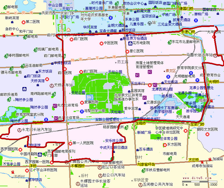 崇文區(qū)是北京市四個(gè)中心城區(qū)之一,坐落在天安門廣場(chǎng)東南側(cè)。東部與朝陽區(qū)搭界,南部與豐臺(tái)區(qū)相交,西部與宣武區(qū)毗鄰,北部與東城區(qū)接壤。平均海拔35米,面積16.46平方公里,轄前門、崇文門外、東花市、天壇、體育館路、龍?zhí)丁⒂蓝ㄩT外7個(gè)街道辦事處,237個(gè)居委會(huì),人口43萬,是北京市最小的一個(gè)市轄區(qū)。該區(qū)已于2010年7月1日撤銷。