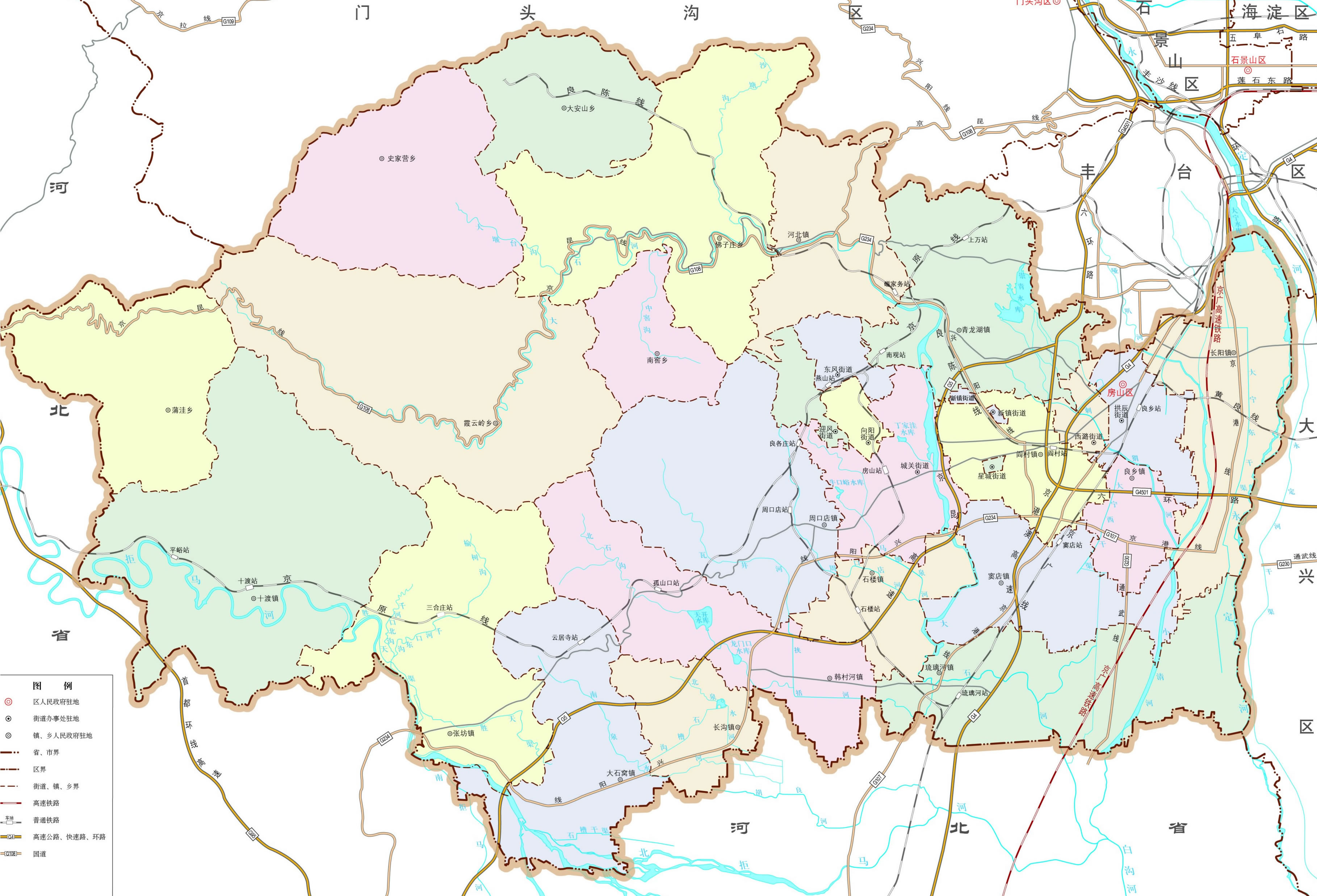 房山區(qū)轄8個(gè)街道、3個(gè)地區(qū)、11個(gè)鎮(zhèn)、6個(gè)鄉(xiāng):