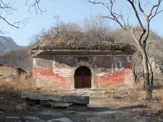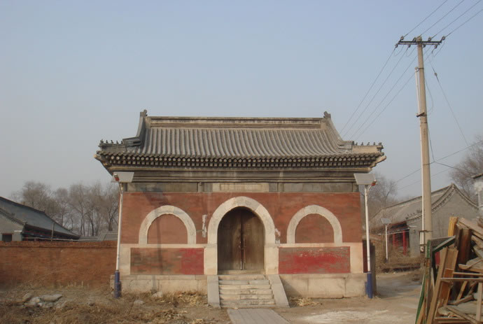 廣智禪寺 廣智禪寺坐西朝東,占地5畝左右,始建于明建文時期,清代曾修繕。原有兩進(jìn)院落,前低后高,梯狀布局。山門早已無存,門后為紅墻觀音寶殿,為全部磚石結(jié)構(gòu)的穹窿頂無梁殿,面闊9.50米,進(jìn)深8.40米(面闊與進(jìn)深相差不大,幾近正方形),據(jù)說是北京地區(qū)跨度最大穹窿頂古建筑。四面無窗,只有正面一個青石拱券門,廡殿頂灰筒瓦屋面,門上原有石額:“觀音寶殿”,2013年秋被盜走。殿內(nèi)原有漢白玉雕須彌座,現(xiàn)也已無存。