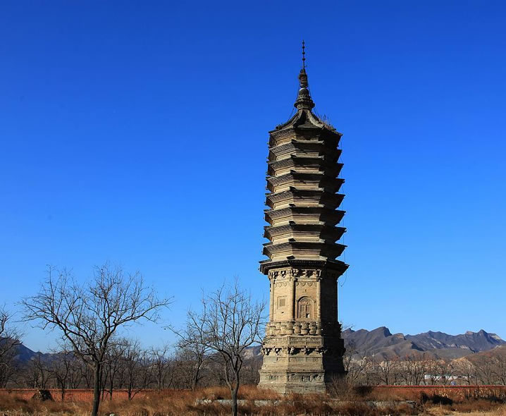 豆各莊塔 豆各莊塔位于青龍湖鎮(zhèn)豆各莊村,為房山區(qū)文物保護(hù)單位。始建于唐代。坐西朝東,是一座八角密檐式磚塔,通高約15米。塔身上有磚雕。八面磚雕輪、螺、傘、蓋、花、罐、魚、長的佛八寶圖像。塔基上端為三層磚雕仰蓮。東面辟券門,其它各面分別開設(shè)磚雕的假門、假窗。塔身之上是八層仿樓閣密檐。第一層檐下裝飾斗拱。其它每兩層榴之間做成仰、覆蓮瓣。檐子為疊澀式。塔剎由下大上小的兩層磚雕蓮花組成。這座塔的特點(diǎn)是采用蓮花裝飾的成分多:整個塔由基座上的三層仰蓮?fù)衅穑T窗層以上每兩層檐中央又裝飾上下對稱的仰覆蓮瓣,共有八層;再用蓮花封頂。 風(fēng)景名勝