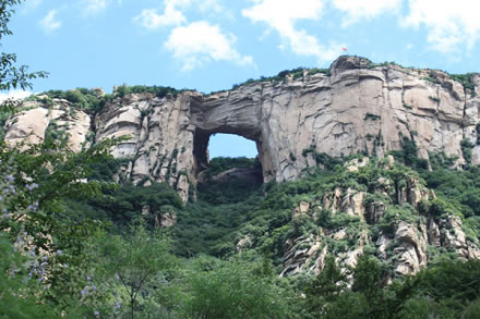北京天門山風(fēng)景區(qū)坐落在風(fēng)景秀麗的北京市密云區(qū)石城鎮(zhèn)柳棵峪,距離北京東直門約80千米。為國家AA級(jí)景區(qū)。是以美麗壯觀的花崗巖地貌和獨(dú)特的變質(zhì)核雜巖構(gòu)造觀為主結(jié)合溪水潭穴、象形石、原始次生林等景觀的地質(zhì)公園。天門山西壁是國家級(jí)花崗巖地質(zhì)景觀,景區(qū)內(nèi)有不同年代崩塌堆積形成的各種花崗巖洞穴、象形石,是一座不可多得的地質(zhì)博物館。