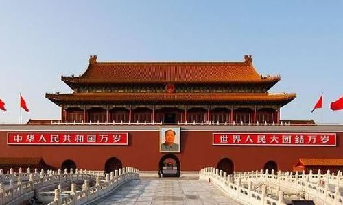 天安門廣場位于北京市中心,南北長880米,東西寬500米,面積達44萬平方米,可容納100萬人舉行盛大集會。廣場內(nèi)沿北京中軸線由北向南依次矗立著國旗桿、人民英雄紀念碑、毛主席紀念堂和正陽門城樓。