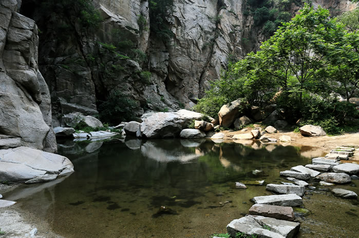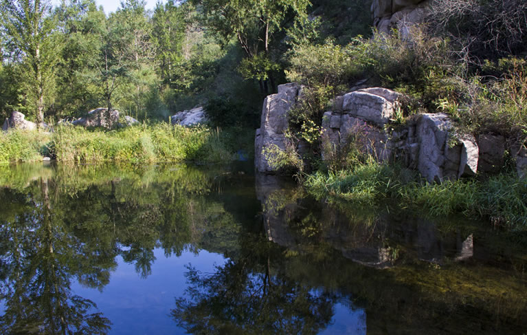 雙秀峰自然風景區(qū) 雙秀峰自然風景區(qū)位于大莊科鄉(xiāng)大青溝村東,鐵爐村南1.5公里,鄉(xiāng)駐地南7.8公里處。南與昌平接壤,北有鐵爐村,西沙梁村,東有大秦鐵路鐵爐火車站,西為連綿群山。雙峰并峙,直插云霄,中有一條石縫,故名。海拔672米,整個山峰大部分為褚紅色粗糙花崗巖,山西北側有匯泉而成的溪流,是碓石口河(東沙河)發(fā)源地。