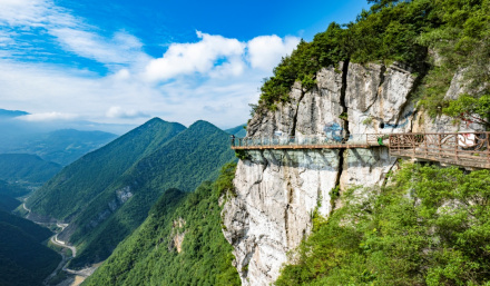九重天景區(qū)位于豐都縣雙路鎮(zhèn)蓮花山,國家AAAA級景區(qū),距縣城15公里,景區(qū)核心景點玻璃棧道全長3.5公里,距離龍河谷底900余米,一座長達200余米、懸空高度達900余米的5D玻璃吊橋聳立于棧道之上,景區(qū)還有懸崖秋千、飛拉達攀巖、網(wǎng)紅大秋千等體驗項目,大人小孩皆可體驗。另外景區(qū)配備了天空之境、玫瑰長廊、風(fēng)車長廊等網(wǎng)紅打卡點,讓網(wǎng)紅打卡者流連忘返。觀龍河峽谷絕美風(fēng)光,體驗高空項目的驚險刺激。