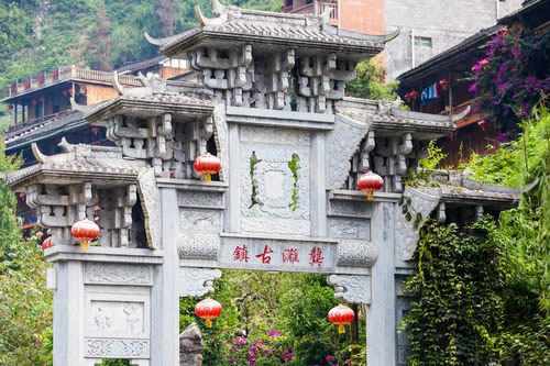 龔灘古鎮(zhèn)源自蜀漢,建置于唐,距今1800年的歷史。古鎮(zhèn)街道歷代修葺,至2005年總長(zhǎng)約3千米,皆以石板街、吊腳樓、坡屋面、小青瓦為風(fēng)貌特征。其中老街長(zhǎng)1.5千米,存寺廟、祠堂、古碼頭、古纖道、古梯道、古橋梁、古牌坊、古樹、古井、古碑石等。青石板街將古鎮(zhèn)按照不同的歷史背景、民族文化以商業(yè)業(yè)態(tài)形式布局為五段,以榨油、織布為特色的“油坊路”,以背夫腳夫文化為主題的“背夫路”,以西秦會(huì)館為代表建筑的“西秦路”,展示纖夫文化的“纖夫路”,以鹽商鹽號(hào)為特色的“老鹽路”。有50余堵別具一格的封火墻、200多個(gè)古樸幽靜的四合院、50多座形態(tài)各異的吊腳樓,獨(dú)具地方特色,是中國(guó)國(guó)內(nèi)保存完好且頗具規(guī)模的明清建筑群。