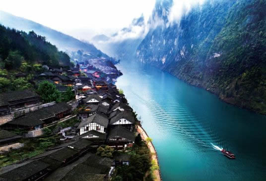 烏江畫廊指從龔灘至貴州沿河100余千米的烏江河段,是烏江流域景色最為壯麗的一段。船行其中,水碧山青如水墨長(zhǎng)卷,有“船在水中行,人在畫中游”之感,因此有“千里烏江,百里畫廊”之譽(yù)。