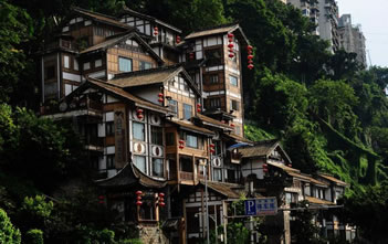 吊腳樓作為西南地區(qū)獨有的傳統(tǒng)民居建筑,最早可追溯到東漢以前。由于重慶山多,土地緊張,祖先依山就勢,因地制宜,利用木條、竹方,懸虛構(gòu)屋,陡壁懸挑,依山建造出一棟棟樓房。依山、靠崖、臨江是重慶吊腳樓的獨到之處,洪崖洞吊腳樓建筑群復(fù)原了巴渝古都風貌,把古重慶最具特色的吊腳樓、古牌坊、木垂花、懸挑梁、雕刻樓廊、半山街市和青石板路等山地民居集中展現(xiàn)出來,在懸崖峭壁上建成高13層的吊腳樓群,因此被建筑業(yè)界稱為“中華懸崖城”,被中外媒體譽為“天空之城”。