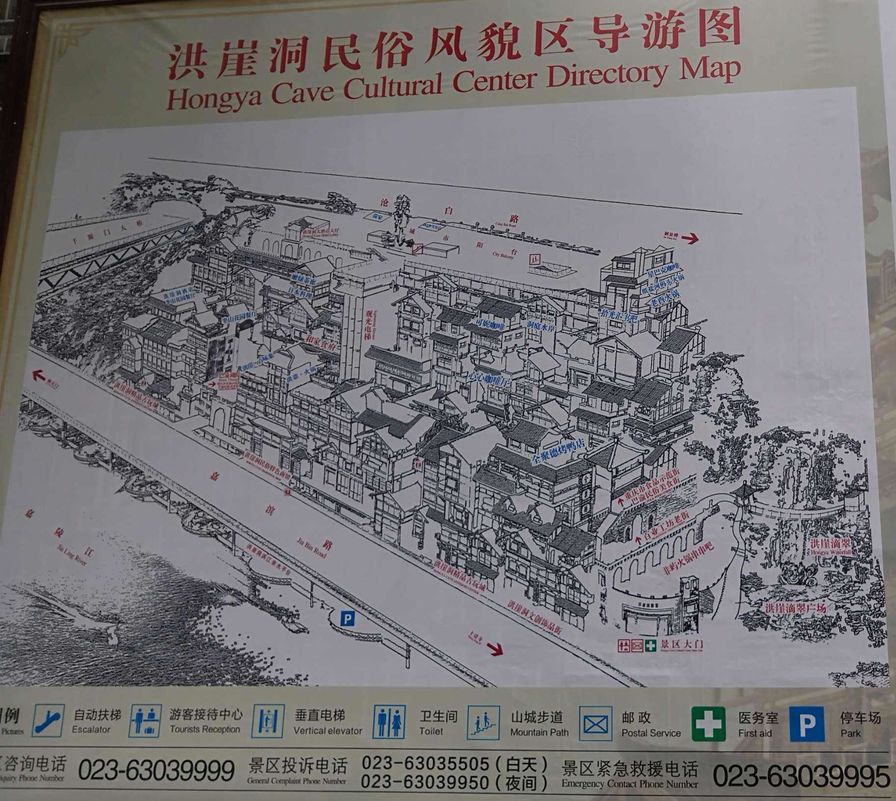 洪崖洞民俗風貌區(qū)長約50米,總占地面積3.15萬平方米,分為紙鹽河精品古玩街、天成巷百業(yè)工坊老街、洪崖洞巴渝民俗美食街、洪崖洞異域美食街。有特色餐飲、休閑娛樂、巴渝民間工藝品、特色旅游商品及精品古玩等店鋪。洪崖洞一共有11層,夜晚燈光從晚上6點開燈,10點熄燈?赏跄_群樓觀洪崖滴翠,逛山城老街賞巴渝文化,燙山城火鍋看兩江匯流,品天下美食。形成了“一態(tài)、三絕、四街、八景”的經(jīng)營形態(tài),體現(xiàn)了巴渝文化休閑業(yè)態(tài)!耙粦B(tài)”指的是文化休閑業(yè)態(tài)!叭^”指的是吊腳樓、集鎮(zhèn)老街、巴文化;“四街”指洪崖洞的四條街:動感酒吧街、巴渝風情街、盛宴街美食街、城市陽臺異域風情街。四條大街分別融匯了時尚元素,主題迥異特色鮮明。成為重慶娛樂生活、夜生活的標向!鞍司啊敝傅氖呛檠碌未、兩江匯流、吊腳樓群、洪崖群雕、城市陽臺、巴文化柱、濱江好吃街、嘉陵夕照。
