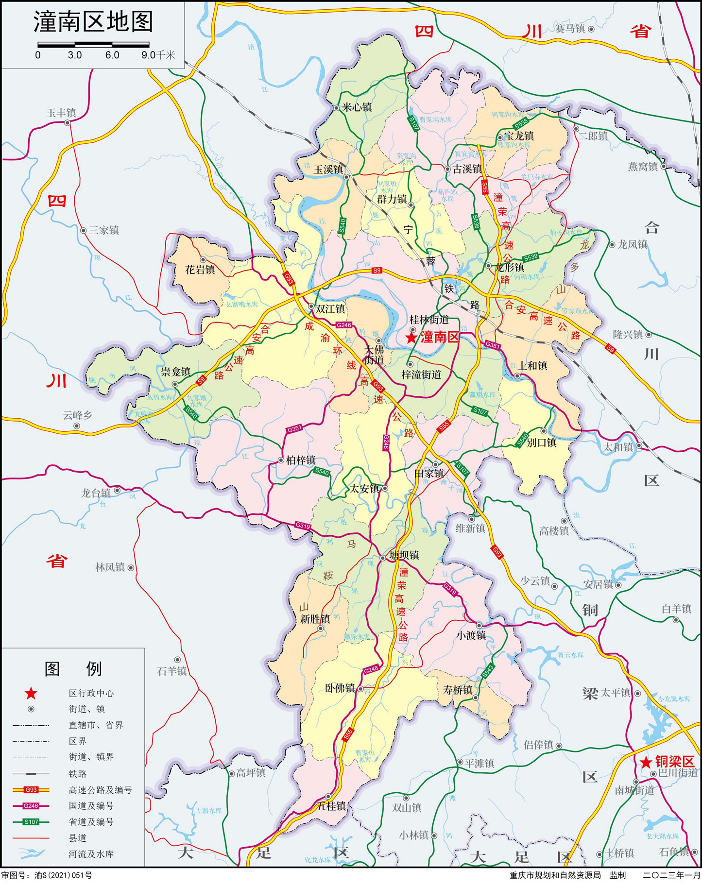 潼南區(qū)轄3個(gè)街道、20個(gè)鎮(zhèn):