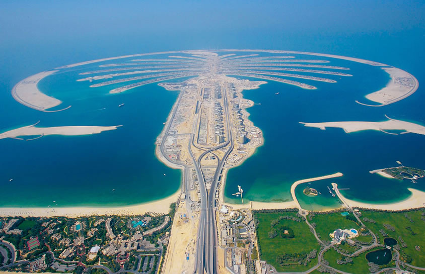 棕櫚島 棕櫚島是建立在迪拜的三座人工群島的總稱(chēng)。它分為朱美拉棕櫚島、杰貝阿里棕櫚島、迪拉人工島。 每個(gè)島上都有大量的別墅、公寓發(fā)售,為整個(gè)迪拜酋長(zhǎng)國(guó)增添了諸多供不應(yīng)求的海灘。耗資140億美元打造而成的迪拜棕櫚島被譽(yù)為“世界第八大奇跡”。 每座島嶼包括三部分:“樹(shù)干”、“樹(shù)冠”和新月型圍壩。島上還將種植12000棵棕櫚樹(shù),這些樹(shù)苗正在位于朱梅拉的苗圃里栽培。整座島嶼就是一個(gè)巨大的避暑勝地和游玩天堂,上面擁有2400套海邊住房,可以入住5000人。另外,還有運(yùn)動(dòng)場(chǎng)、健身房和電影院等設(shè)施。