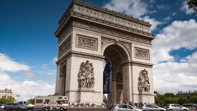 巴黎凱旋門 凱旋門(法語:L'Arc de Triomphe),位于法蘭西共和國首都巴黎市中心城區(qū)香榭麗舍大街,地處巴黎戴高樂星形廣場中央,是為頌揚奧斯特里茨戰(zhàn)役勝利,由法蘭西第一帝國皇帝拿破侖主持修建的一座紀念性建筑,是法國國家象征之一、法國四大代表建筑之一、巴黎市地標紀念碑。 凱旋門正如其名,是一座迎接外出征戰(zhàn)的軍隊凱旋的大門。它是現(xiàn)今世界上最大的一座圓拱門,位于巴黎市中心戴高樂廣場中央的環(huán)島上面。這座廣場也是配合雄獅凱旋門而修建的,因為凱旋門建成后,給交通帶來了不便,于是就在19世紀中葉,環(huán)繞凱旋門一周修建了一個圓形廣場及12條道路,每條道路都有40~80米寬,呈放射狀,就像明星發(fā)出的燦爛光芒,因此這個廣場又叫明星廣場。凱旋門也稱為“星門”。