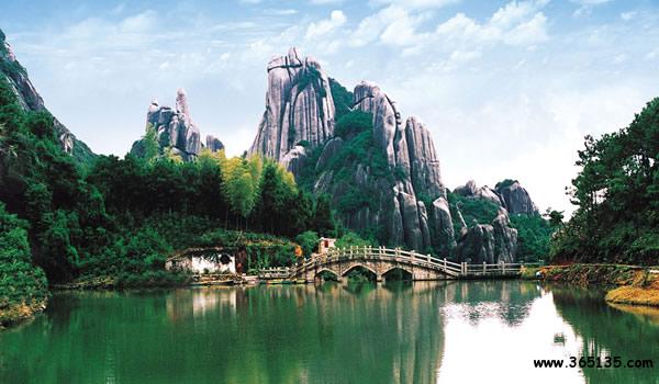 國家重點(diǎn)風(fēng)景名勝區(qū)、世界地質(zhì)公園一一太姥山,位于閩浙邊界的福建省福鼎市境內(nèi),北鄰浙江溫州118公里,南距福建福州200公里,雄峙于東海之濱,山海相依、傲岸秀拔,以 “山海大觀”稱奇。傳說東海諸仙常年聚會(huì)于此,故有“海上仙都”的美譽(yù)。它北望浙江雁蕩、西眺福建武夷,三者成鼎足之勢(shì),閩人稱武夷、太姥為雙絕,浙人視雁蕩、太姥為昆仲, 構(gòu)成閩越三大名山。 太姥山是一處以花崗巖峰林巖洞為特色,融山、海、川、島和人文景觀于一體的風(fēng)景旅游勝地,觀賞面積92.02平方公里,保護(hù)面積200平方公里,擁有太姥山岳、九鯉溪瀑、,幜袓u、晴川海濱四大景區(qū)和瑞云畬寨、冷城古堡、翠郊古民居三處獨(dú)立景點(diǎn)。旅游資源有武夷、雁蕩山水之秀麗;有黃山、泰山云霧之奇幻;有嶗山、三亞海景沙情;有普陀、武當(dāng)佛蹤道跡。游人就近便可登山、探洞、戲水、游島、漂流……尋覓古剎幽遠(yuǎn),領(lǐng)略畬寨風(fēng)情,一舉多得。