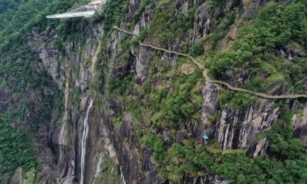 心形懸崖棧道位于岱仙瀑布兩側(cè),從遠(yuǎn)處看,兩邊的棧道整體呈一個心形,蜿蜒盤桓在崖壁上,心形棧道全程3000米,高差314米,是國內(nèi)難得一見的心形立體環(huán)瀑棧道。
