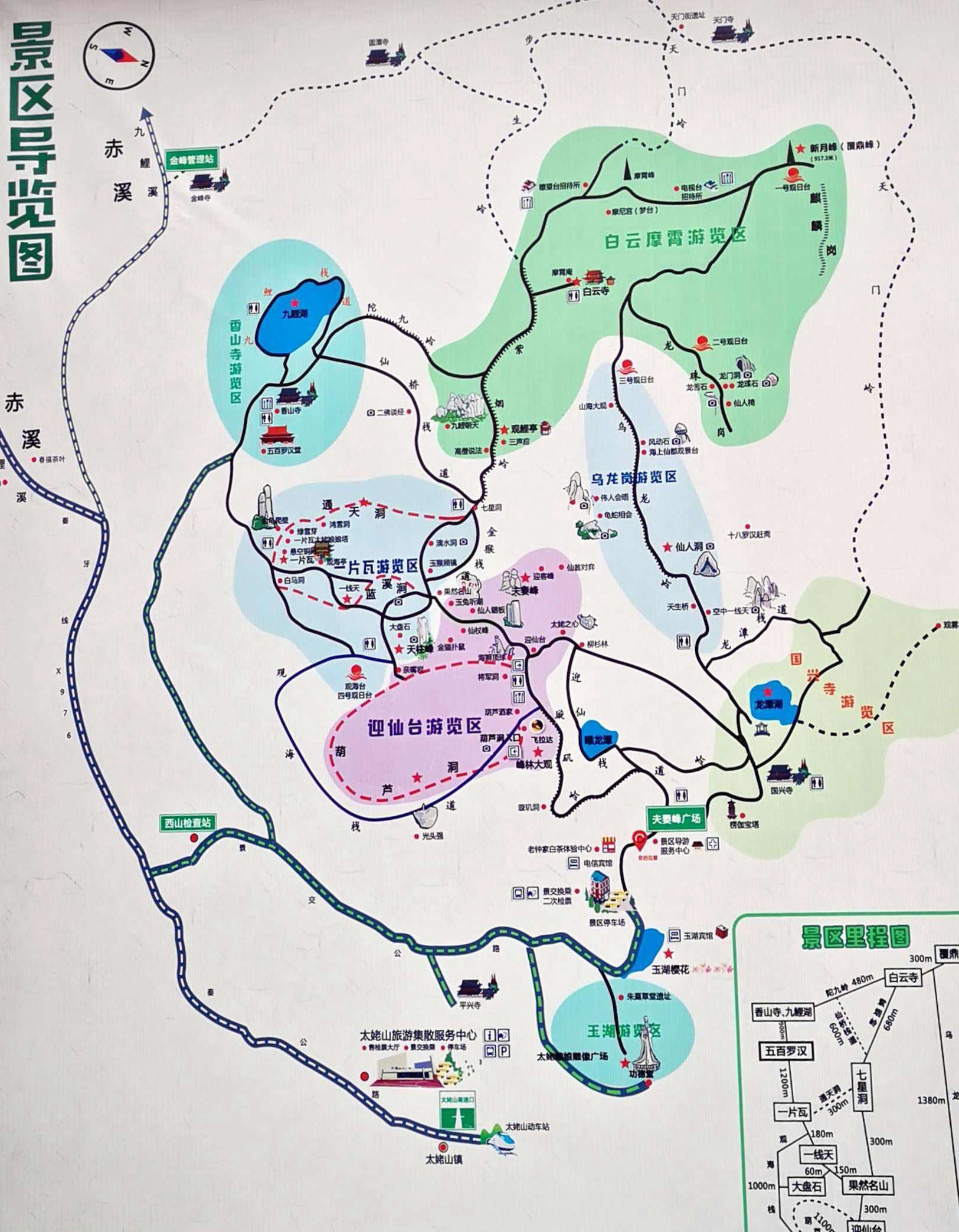 主要景點:香山寺、五百羅漢堂、九鯉湖、青龍臺、蝙蝠洞、陀九嶺、望仙橋、紗帽巖。