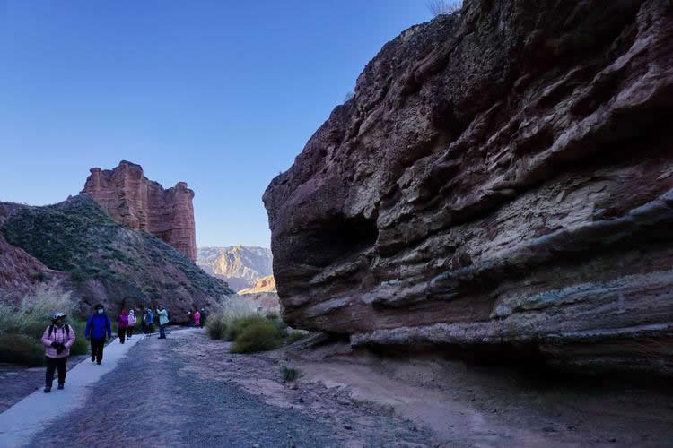 小西天景區(qū)位于冰溝景區(qū)的東部,主要景觀為一條滿布丹武地貌的山溝,均為長(zhǎng)約800米的山體游步道,游覽時(shí)間大約60分鐘。主要景點(diǎn)有神駝?dòng)e、紅層地貌、泥瀑布、泥鐘乳、泥葡萄、桃園結(jié)義(新娘出嫁、樓蘭商駝、千里相會(huì))、玄武門(龜蛇鎖江)、紅纓帽(裕固族帽子)、陰陽(yáng)柱(大地之根)、石雞(筆架峰)、七女峰(侍女拜佛)、僧人崖、金蟾拜佛、大佛石等,最有名氣的有神駝?dòng)e、桃園三結(jié)義、玄武門、蘑菇石、大地之根、七女峰、望夫石等景觀。