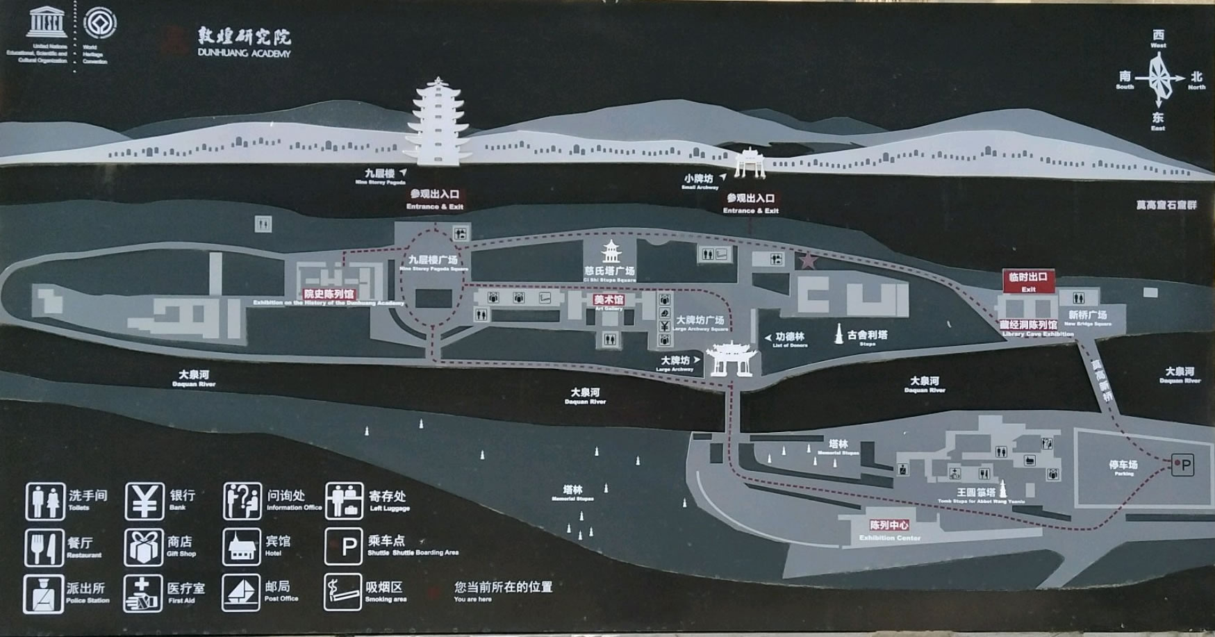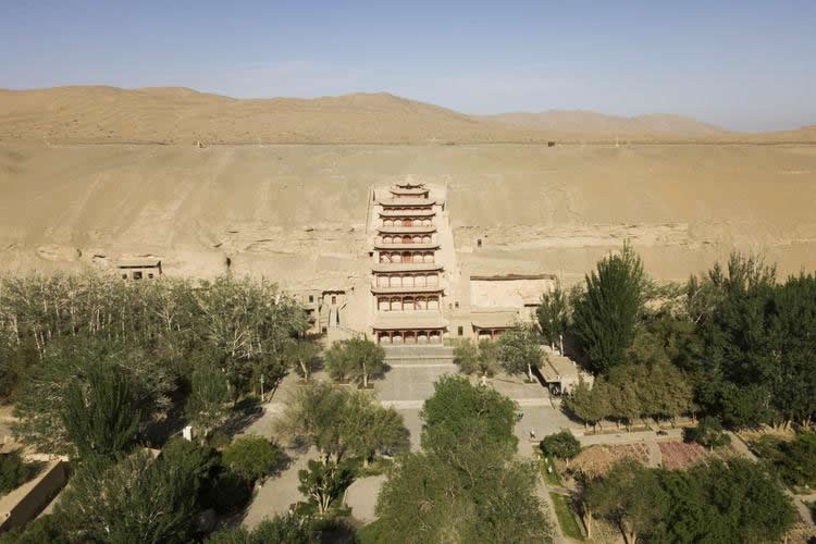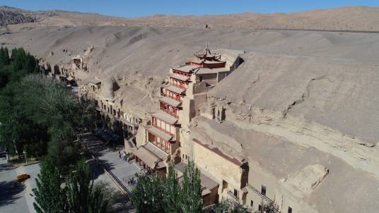 敦煌位于甘肅省的西部,從自然地理的位置上說,正處在河西走廊的西部盡頭處。這里南接青海,西連新疆,自漢代以來一直就是中西交通的樞紐。它的開鑿從十六國時期至元代,前后延續(xù)約1000年,這在中國石窟中絕無僅有。它既是中國古代文明的一個璀璨的藝術寶庫,也是古代絲綢之路上曾經(jīng)發(fā)生過的不同文明之間對話和交流的重要見證。莫高窟現(xiàn)有洞窟735個,保存壁畫4.5萬多平方米,彩塑2400余尊,唐宋木構窟檐5座,是中國石窟藝術發(fā)展演變的一個縮影,在石窟藝術中享有崇高的歷史地位?邇(nèi)繪、塑佛像及佛典內(nèi)容,為佛徒修行、觀像、禮拜處所。敦煌石窟是建筑、雕塑、壁畫三者結合的立體藝術。洞窟分南北兩區(qū):南區(qū)492個洞窟是莫高窟禮佛活動的場所,北區(qū)243個洞窟主要是僧人和工匠的居住地,內(nèi)有修行和生活設施土炕坑、煙道、壁龕、燈臺等,但多無彩塑和壁畫。