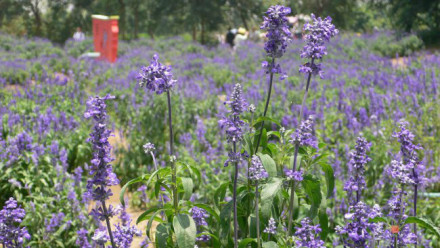 融匯日本北海道富良野的時尚文化,以薰衣草為主打色,栽植七種不同花卉,盛開色彩繽紛的花帶,黃的、紅的、金的、白的,紫色,綠的、橙的,2萬多平方米的花海,形成一個巨型的七彩花帶,構成一幅大地上的七色彩虹,生動而美麗。
