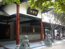 龍圖館極具嶺南古代建筑風(fēng)格。前后有廊,中間有天井,風(fēng)火山墻。館外館內(nèi)均有不少磚雕、木雕、泥塑、灰塑等,造工精巧,古樸典雅。大門外18棵羅漢松排列成行,象征包公出巡時的儀仗隊。旁邊是一排紅花紫薇,開花時節(jié),嫣紅翠綠,相映成趣。“龍圖館”橫匾下,有對聯(lián):“木石有靈再現(xiàn)包公清正事,匠師無憾巧傳百姓仰廉情”,“投硯鎮(zhèn)江流尚有遺待明古訓(xùn),蜚聲留宋典不曾枉法負(fù)平生”。既頌揚(yáng)了包公輝煌政績,又突出了龍圖館的文化內(nèi)涵。