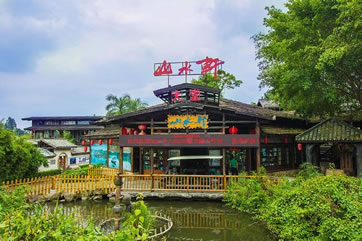 占地1600平米的全新“演藝廣場(chǎng)”可同時(shí)容納上千名觀眾觀看精彩的文藝表演,演員和觀眾還可以現(xiàn)場(chǎng)互動(dòng)、參與。舞臺(tái)采用價(jià)值數(shù)百萬的立體音響設(shè)備,裝飾流光溢彩的燈光效果,彰顯藝術(shù)大舞臺(tái)的魅力。數(shù)十名技藝精湛的演員輪流作民間雜技、歌舞、特技、絕技等全天候表演,精彩不斷,亮點(diǎn)紛呈。游客可在觀賞具有獨(dú)特中國(guó)鄉(xiāng)土風(fēng)情的文藝節(jié)目的同時(shí),參與體驗(yàn)民間鄉(xiāng)土文藝演出的神奇魅力。此外,觀瀾演藝廣場(chǎng)2樓還設(shè)置裝修豪華、座位舒適、服務(wù)完美的10間卡啦Ok包房,為VIP客人提供人性化演藝服務(wù)。