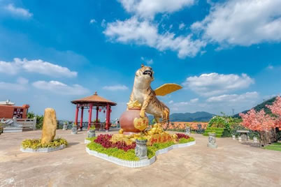 觀(guān)音山的“鵲橋”凌駕山巔之上,以牛郎織女的典型愛(ài)情故事為主題,為天下有情人架設(shè)一條真實(shí)版的愛(ài)情橋梁。全橋采用石壘托起,橋身和橋面由蓮花與錦鯉的手工3D彩繪組成戲水之景。