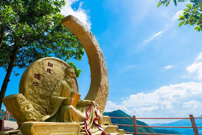 大月老,別名柴道煌,民間又稱(chēng)月下老人、月下老兒,宋州宋城人,是中國(guó)民間傳說(shuō)中主管姻緣的仙人,對(duì)人間男女以紅繩相系,確定姻緣。觀(guān)音山上的月老臺(tái)位于吉祥路中段,高3米,由坐式老人及半月組成,在月下倚布囊、坐于階上、向月檢書(shū)的老人正是執(zhí)掌天下之婚牘,維系千里之姻緣的月老。
