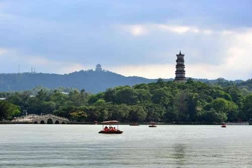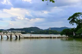 惠州西湖面積遼闊,湖岸彎環(huán)曲折,湖上洲嶼點(diǎn)綴、三面青山環(huán)抱。湖泊東西最寬處達(dá)4公里,南北最長達(dá)6公里,面積最大時(shí)有10平方公里,湖區(qū)面積約80平方公里。在煙波浩淼的湖面上,堤橋如帶,把湖面分割成五大部分,素有“五湖六橋”之稱。北宋大文學(xué)家蘇東坡贊惠州“山水秀邃”。這里是廣東著名的5A級國家風(fēng)景名勝區(qū)和旅游勝地。
