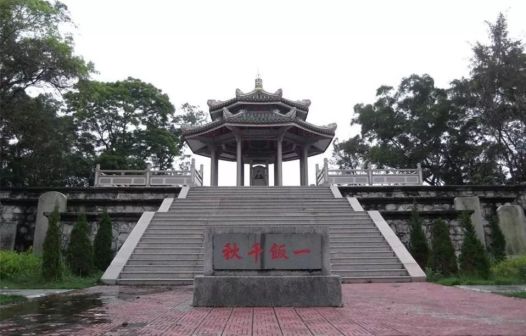 方飯亭位于汕尾市海豐縣城北郊五坡嶺上,坐西北向東南,占地960平方米。亭為六柱八角重檐攢尖頂,通高9米;亭內(nèi)覆蓋著一座廡殿頂古石亭,上刻“方飯亭”三字,內(nèi)豎立石碑刻有文天祥半身畫像,像上方陰刻小篆《衣帶銘》:“孔曰成仁,孟曰取義,惟其義盡,所以仁至,讀圣賢書,所學(xué)何事,而今而后,庶幾無愧!”兩側(cè)亭柱刻有明潮州狀元林大欽所撰對聯(lián):“熱血腔中只有宋,孤忠?guī)X外更何人。”亭前有五層34級臺階通于嶺下草埔,當(dāng)中橫置著“一飯千秋”的石刻碑,兩旁豎立著歷代重修碑記,周圍竹木蔥蘢。該亭始建于明代正德十年(1515年),為紀(jì)念南宋丞相文天祥抗元在五坡嶺不幸被捕而建。亭前原有主建筑“表忠祠”和“忠義牌坊”,于民國二十七年(1938年)秋遭侵華日軍飛機炸損。1955年,海豐縣政府撥款重修方飯亭,并加蓋八角大亭予以保護。1957年5月,被縣政府頒布為縣級文物保護單位。