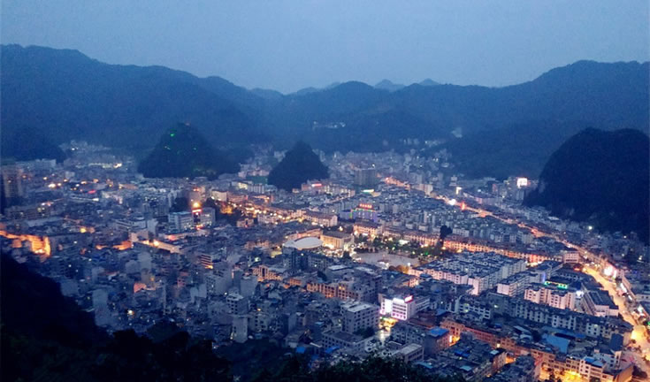 樂(lè)業(yè),隸屬于廣西百色市,被譽(yù)為“世界天坑之都”,位于廣西西北部,地處云貴東南麓,東北與河池市天峨、鳳山兩縣相鄰,東南依凌云縣,西南與田林接壤,西北與貴州省的冊(cè)亨、望謨、羅甸三縣隔紅水河相望。縣城距國(guó)家重點(diǎn)工程龍灘水電站160公里,距百色市168公里,距廣西首府南寧市400公里,距貴州省省會(huì)貴陽(yáng)市370公里,是重慶、貴州經(jīng)龍邦口岸(國(guó)家一類(lèi)口岸)往東盟國(guó)家最為便捷的通道之一。樂(lè)業(yè)縣常住人口為146397人。總面積2633.17平方千米。全縣現(xiàn)轄4鎮(zhèn)4鄉(xiāng),有84個(gè)村民委(社區(qū))1084個(gè)村民小組。