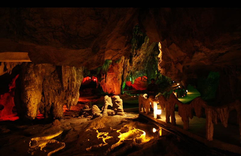 羅妹蓮花洞原名羅妹洞,位于樂(lè)業(yè)縣城西南方向,經(jīng)中外專(zhuān)家聯(lián)合科考隊(duì)考察發(fā)現(xiàn),洞內(nèi)發(fā)育的蓮花盆數(shù)量及規(guī)模堪稱(chēng)世界之最,故將洞名改稱(chēng)“羅妹蓮花洞”。 洞內(nèi)分為六大景區(qū),有59個(gè)景點(diǎn),景觀(guān)以復(fù)合型為主。有高山飛瀑、石柱林、盾帳,飛禽走獸,花鳥(niǎo)蟲(chóng)魚(yú)、漁家村寨、古樹(shù)參天、天山雪景等景致。洞內(nèi)蓮花盆共有296個(gè),盆中盆有600多個(gè),最大直徑達(dá)9.2米,被稱(chēng)為“蓮花盆之王”。