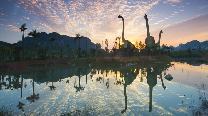龍谷灣恐龍主題公園是國(guó)家AAAA級(jí)旅游景區(qū),位于扶綏縣上龍大道999號(hào),距南友高速公路扶綏出口3公里。占地面積3000畝,是龍谷灣旅游休閑度假區(qū)的一期工程,于2017年元旦建成開業(yè)。公園由遠(yuǎn)古呼喚、多媒體體驗(yàn)中心、動(dòng)感地帶、兒童王國(guó)、恐龍谷等板塊組成,是集科普研學(xué)、旅游觀光、游樂體驗(yàn)為一體的亞洲最大的恐龍主題公園。龍谷灣旅游休閑度假區(qū)瞄準(zhǔn)“3.5小時(shí)經(jīng)濟(jì)圈”休閑度假市場(chǎng),突出恐龍文化和壯族民俗文化,規(guī)劃建設(shè)主題公園、特色小鎮(zhèn)、商業(yè)綜合體、田園綜合體、康養(yǎng)旅居城、體育旅游、智慧旅游、國(guó)際教育、民宿、汽車旅游營(yíng)地等,形成龍谷灣恐龍公園、國(guó)際慢生活商業(yè)中心、錦繡八桂田園綜合體、國(guó)際酷玩休閑世界、國(guó)際共享康養(yǎng)旅居城五大區(qū)域。