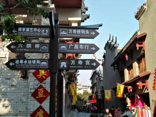 碼頭多用料石鑲砌,亦有因礁而設(shè)者。它們長10余米,寬約3米,皆伸入江底,浮出水面,呈長方形平臺狀。比起桂北一般圩鎮(zhèn)的碼頭來,它們顯得穩(wěn)重,大氣;若與武漢的江岸碼頭,北海的深水碼頭相比,則顯得小巧玲瓏,古樸秀美。它們順江排列,而兩者之間卻并不等距,具有一種錯落感,富有美學(xué)價值。碼頭靠岸的一端,多連有一段平地,或古榕濃蔭,或龍亭飛角,或丹桂飄香,或鳳竹搖曳,兼有實用和觀賞價值。碼頭與鎮(zhèn)區(qū)均有巷道相通,依坡砌級,石板鋪路,高墻夾擁,逼深邃,天光一線,給碼頭平添一種縱深感和活力。