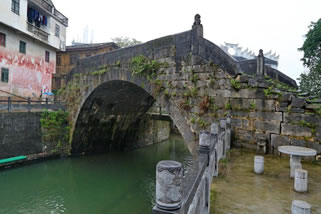 石板路旁的房子多為青磚、青瓦的兩層明清建筑,歷史滄桑隨處可見。每棟房子設(shè)計十分合理,集商住于一身,均由門前、天井、正房、廂房、后院組成?拷值囊话阕麂伱鎻氖律虡I(yè),有樓梯可上二層。往里走是天井,一般都栽有花草,利于采光;天井后是正房,高大寬敞,供著神像及祖宗牌位,是主人活動、會客的地方;兩邊是用來居住的廂房。正房、廂房的門窗上都雕有花紋;正房后有門可到后院,后院臨江并建廚房和廁所,有石階可到江邊取水、洗衣。到大圩,萬壽橋是必去的地方。萬壽橋詩建于明代,是一座石塊砌起的石拱橋,橋面的石頭已被磨得溜光發(fā)亮,間雜些許小草,古樸自然。橋的西面是漓江,是欣賞漓江及對岸螺螄山的極佳位置。
