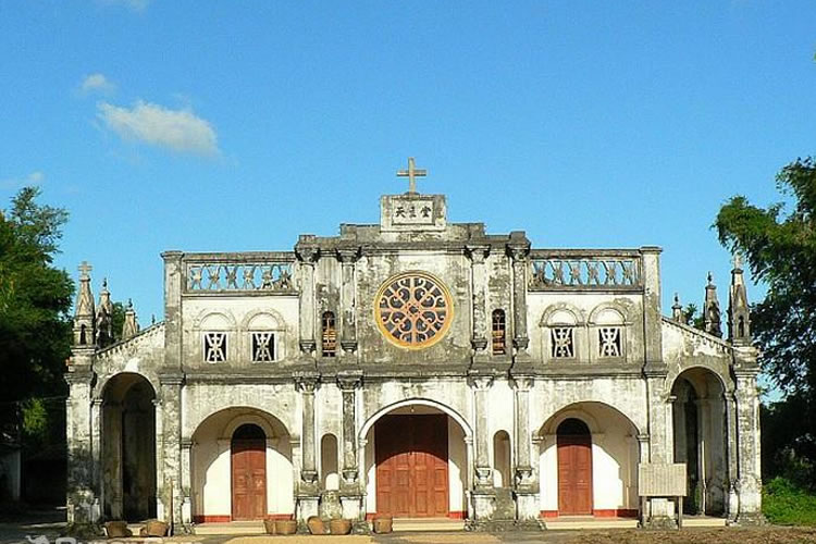 羅浮恒望天主教堂距離市中心約5公里,由法國(guó)傳教士建于1832年,歷史悠久。當(dāng)時(shí)的羅浮天主教堂屬北海教區(qū)。初建時(shí)教堂占地10000余平方米,設(shè)有教堂、鐘樓、育嬰室(收養(yǎng)棄嬰)、男校、仁愛堂、圣堂、織紡堂等。由于歷經(jīng)歲月的沖刷、歷次政治風(fēng)暴的滌蕩以及人口不斷增加的影響,如今的羅浮天主教堂只剩幾百米的范圍內(nèi)。羅浮天主教堂是東興所有的三個(gè)教堂中最為典型的法式建筑。教堂正面及兩側(cè)由十幾根柱子托起,形成大半框形的走廊。每根柱子之間都砌成拱形的門的形狀,相互承接。每根柱子的上方都修成如鐘樓的樣式,并努力地讓它接近天空。