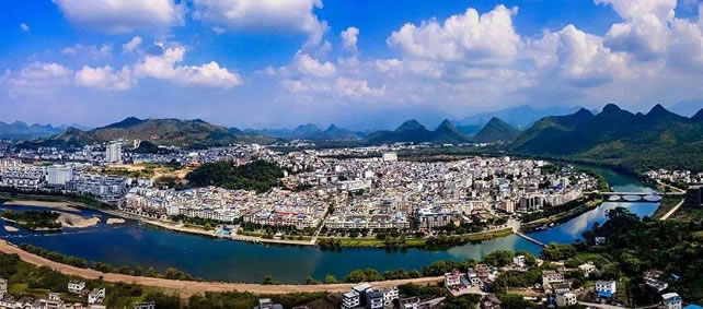 位置境域 恭城瑤族自治縣位于廣西壯族自治區(qū)東北部,桂林市東南部,東與富川瑤族自治縣及湖南江永縣交界,南與鐘山縣、平樂縣毗鄰,西接陽朔縣、靈川縣,北臨灌陽縣,縣城距桂林市108公里;全縣東西最長(zhǎng)橫距56千米,南北最長(zhǎng)縱距75千米,版圖總面積2139平方公里。
