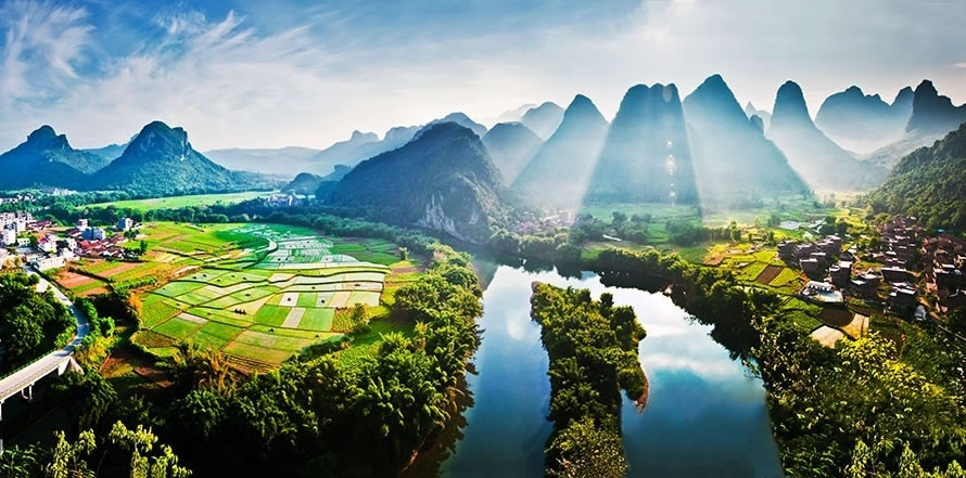 古龍河景區(qū),位于廣西宜州祥貝鄉(xiāng)古龍村,這里是廣西最后的山水凈土,有“世外仙境”的美譽(yù),是國家AAA級(jí)景區(qū)、中國最美意境旅游景區(qū)。古龍河山清水秀,竹翠峰美,游客乘坐竹筏順?biāo),可以觀賞到中國最大的壯族水車,體驗(yàn)到魚鷹捕魚、江中漁韻的詩情畫意,欣賞到壯族古老的圖騰巖畫,感受到最有民俗特色的壯族情歌。在當(dāng)?shù)亓鱾髦?ldquo;桂林山水甲天下,古龍山水賽桂林”的說法。