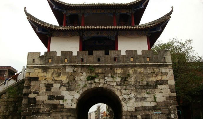 四牌樓,位于宜州區(qū)一中東側(cè),建于乾隆二十五年,時(shí)稱“會(huì)魁樓”,又稱“四牌樓”。此樓位于十字路口,形成東西南北四個(gè)門洞,內(nèi)外相通。四牌樓樓高三層,一樓全用大型細(xì)鑿條石砌成,呈四方形,工藝精巧。邊長11.5米,四面拱門各高3.9米,寬3.5米。二三樓為木質(zhì)結(jié)構(gòu)的重檐樓閣,紅漆圓柱,飛彩流丹,古樸莊重。“文革”中二三樓被拆毀,只存有一樓拱洞石門,樓上建筑及額匾碑刻已不復(fù)存在。