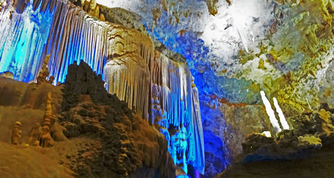 水晶宮位于縣城西北的那社鄉(xiāng)大洛村牛洞屯,距縣城約等43千米,交通便利。水晶宮發(fā)育在峰叢洼地谷地巖溶地貌區(qū),地形起伏大,洞口位于巖溶峰簇的山坡上,高出現(xiàn)代侵蝕面約150米。 水晶宮以潔白純凈、密集分布的石毛發(fā)、卷曲石、石花等景觀為顯著特色,珍惜景觀。洞內空氣負氧離子含量很高,達到每立方厘米36000-70000個,為洞外的5-10倍。 水晶宮為廊道狀的中型洞穴,洞穴基本上順巖層層面面發(fā)育,除數(shù)處大廳外,總體上洞道高低起伏不大。據初步調查,水晶宮的長度總長度1000多米,寬8至50米,高10至80米。洞底局部有軟式和細沙土沉積物。水晶宮內的鐘乳石類有重力水趁機累的鵝管、鐘乳石、石筍、石柱、石帶、石旗和各類石幔、石瀑布、石盾等;非重力水晶沉積類的石毛發(fā)、卷曲石、石花等數(shù)十種,形態(tài)多彩多姿,雪白純凈,玲瓏剔透,集天下藝術珍品于一洞,且正在生長之中,極具觀賞價值和科學探究價值。