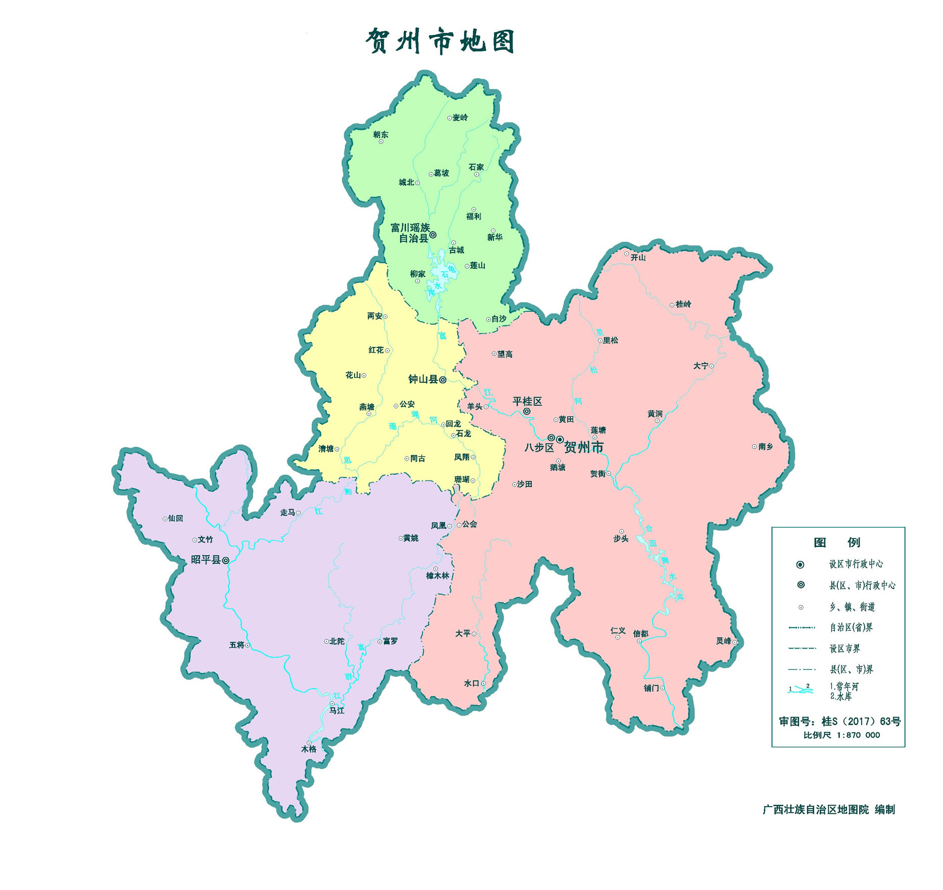 賀州市轄2個市轄區(qū)、2個縣、1個自治縣: