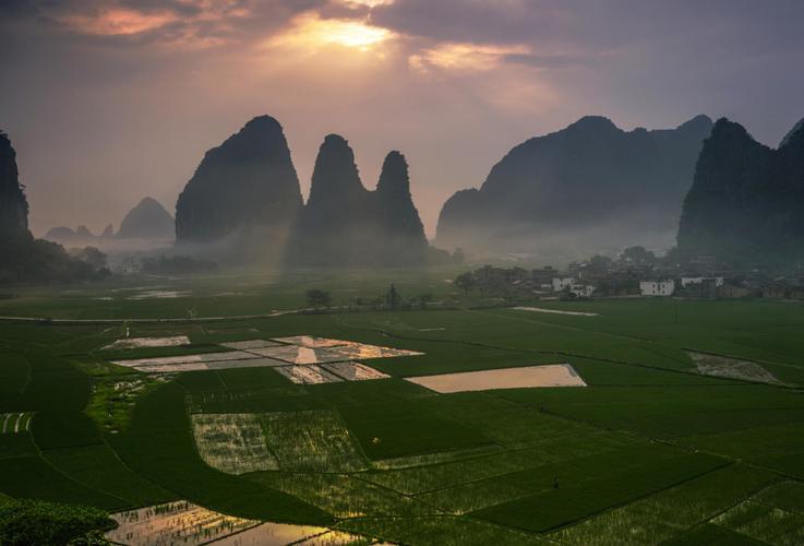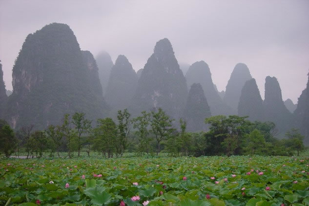 十里畫廊景區(qū)位于縣城西北18千米,國道323線及桂梧高速公路旁,以公安鎮(zhèn)荷塘村為中心,面積約36平方千米。景觀有荷塘群峰、雙元群峰、公婆山、陽元石(朝天蠟燭)、觀音山、寶塔山等。景區(qū)延綿十數(shù)里,風(fēng)景如畫,因而取名為十里畫廊。 廣西賀州市鐘山縣的“公婆山”位于十里畫廊景區(qū)內(nèi),屬喀斯特巖溶地貌峰林平原區(qū)域。“公婆山”是一座天然形成的“人”字形小石山,此山高約30余米、底寬10多米,呈三角形尖頂狀,極像一男一女面對面站立相擁在一起。當?shù)亓鱾髦粋小伙子金水與仙女巧蘭千古不朽的愛情故事,公婆山就是他們的化身。