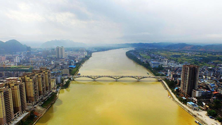 位置境域 融安縣,位于廣西壯族自治區(qū)北部,地處北回歸線以北,北溫帶以南。東與永?h相連,東北與龍勝各族自治縣及臨桂區(qū)接壤,東南與鹿寨縣相接,南與柳城縣毗鄰,西與融水苗族自治縣交界,北與三江侗族自治縣為鄰。縣境南北走向長(zhǎng)89千米,東西寬44.5千米,行政區(qū)域面積2901.28平方千米。