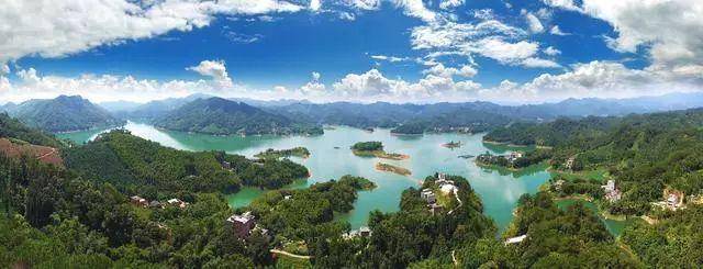 飛龍湖四周重巒疊嶂,茂密的森林郁郁蔥蔥;湖水明亮清澈,宛如鑲嵌在翠嶺青山中的一面明鏡;湖光山色,幽靜的自然之美給人以心曠神怡的感受。